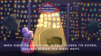 Since then, when night falls, Encarna starts her shift. Travelers at these hours carry little luggage, they are somewhat translucent, and they say, "mazo" boo.